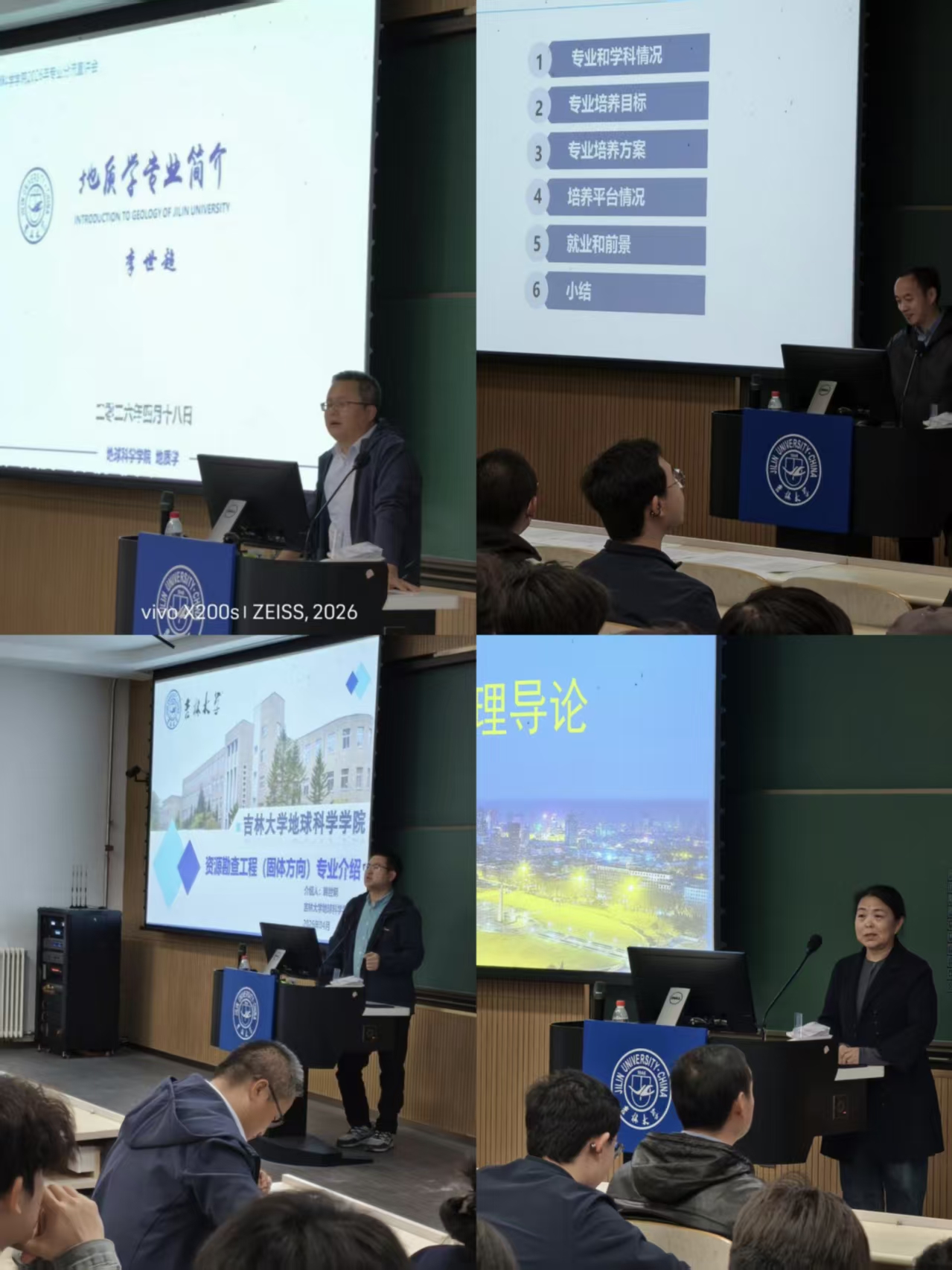 随后,各系主任依次展开专业介绍,为同学们全面解析专业特色与发展前景。地质学系主任李世超聚焦学科核心基础,围绕核心课程设置、国家级科研平台建设与野外科考实践等方面展开详细讲解,结合多地实地调研案例,生动介绍了毕业生在科研院所、地矿部门、环境监测等领域的多元就业方向。能源科学系主任唐华风紧扣国家能源安全与低碳发展战略,以典型盆地勘探项目为切入点,系统讲解了专业培养体系、科研实践机会,以及能源转型背景下的新兴就业赛道。资源工程系主任韩世炯立足矿产资源领域,依托学院深厚的校企合作资源,详细介绍了“理论+实践”深度融合的培养模式,结合新能源矿产发展趋势,全面解读了行业人才需求、保研政策与薪资前景。国土资源系主任王冬艳立足人地协调发展理念,融合管理学、经济学与地理学多学科知识,紧密对接国土空间规划、乡村振兴、城市更新等国家战略,深入分析了专业在党政机关、规划设计院、房地产企业等领域的就业优势,以及产学研融合的培养特色。