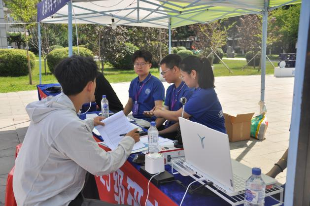 报到当日,朝阳初上,科技之星广场前迎新现场早已布置妥当。温馨的欢迎语、整齐的服务台,处处洋溢着热烈而温馨的氛围。新生到达后,工作人员热情引导,有序开展扫描报到二维码、人脸识别等工作,并为新生发放相关材料。学院党委副书记吴新明亲临现场,检查报到进展,慰问一线志愿者,并对迎新工作予以指导。研究生辅导员姜鹏耐心细致地为新生解答疑问,为新生快速适应新环境保驾护航的同时,传递出学院的深切关怀。