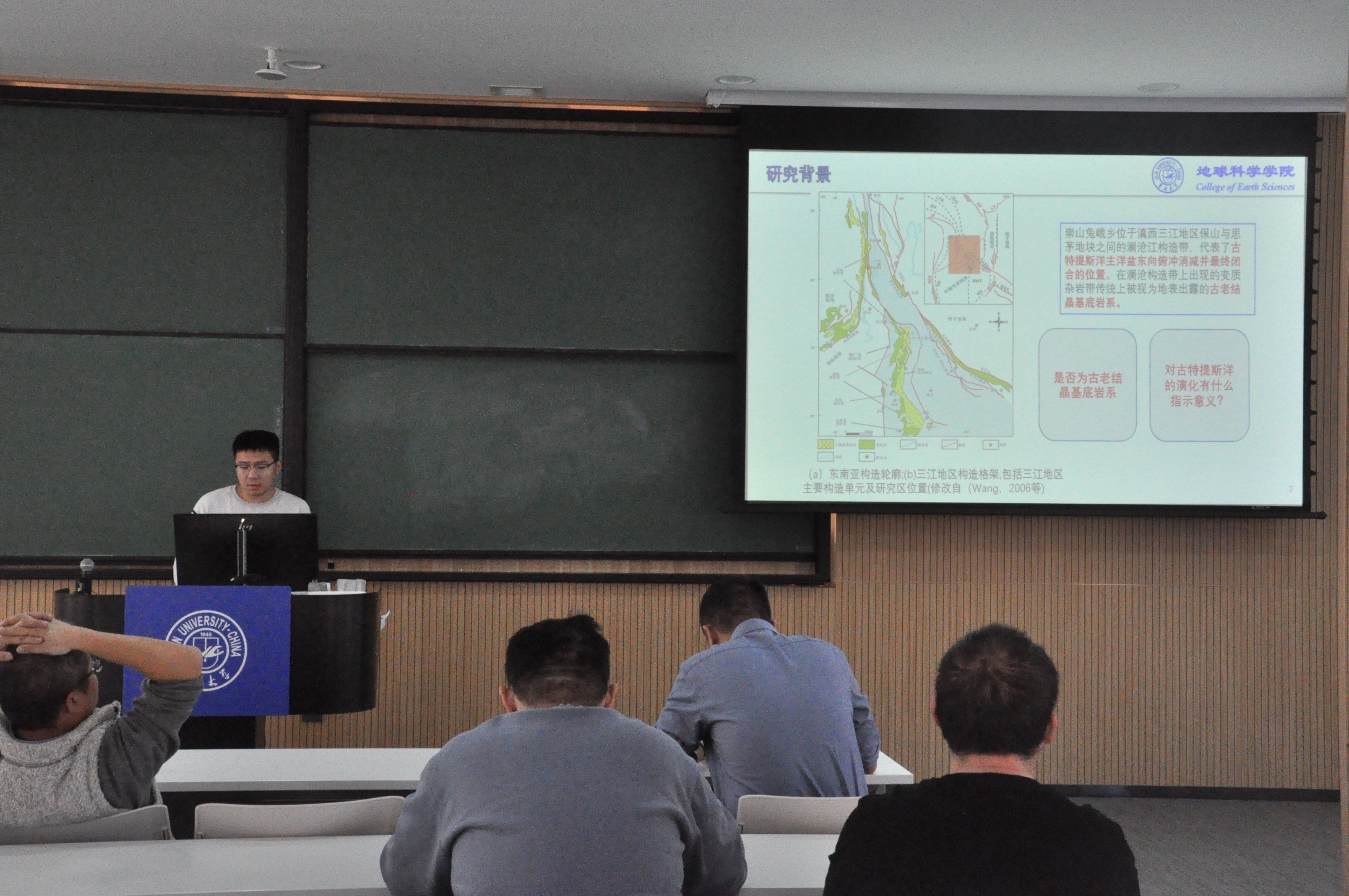 本期学术沙龙活动由李嘉祺、张展豪、彭翠萍、张丽强、张孝衡等五位研究生担任主讲人,范建军、董晓杰、李世超三位老师担任指导老师,活动由2025级地质学专业硕士研究生任慧琳主持。