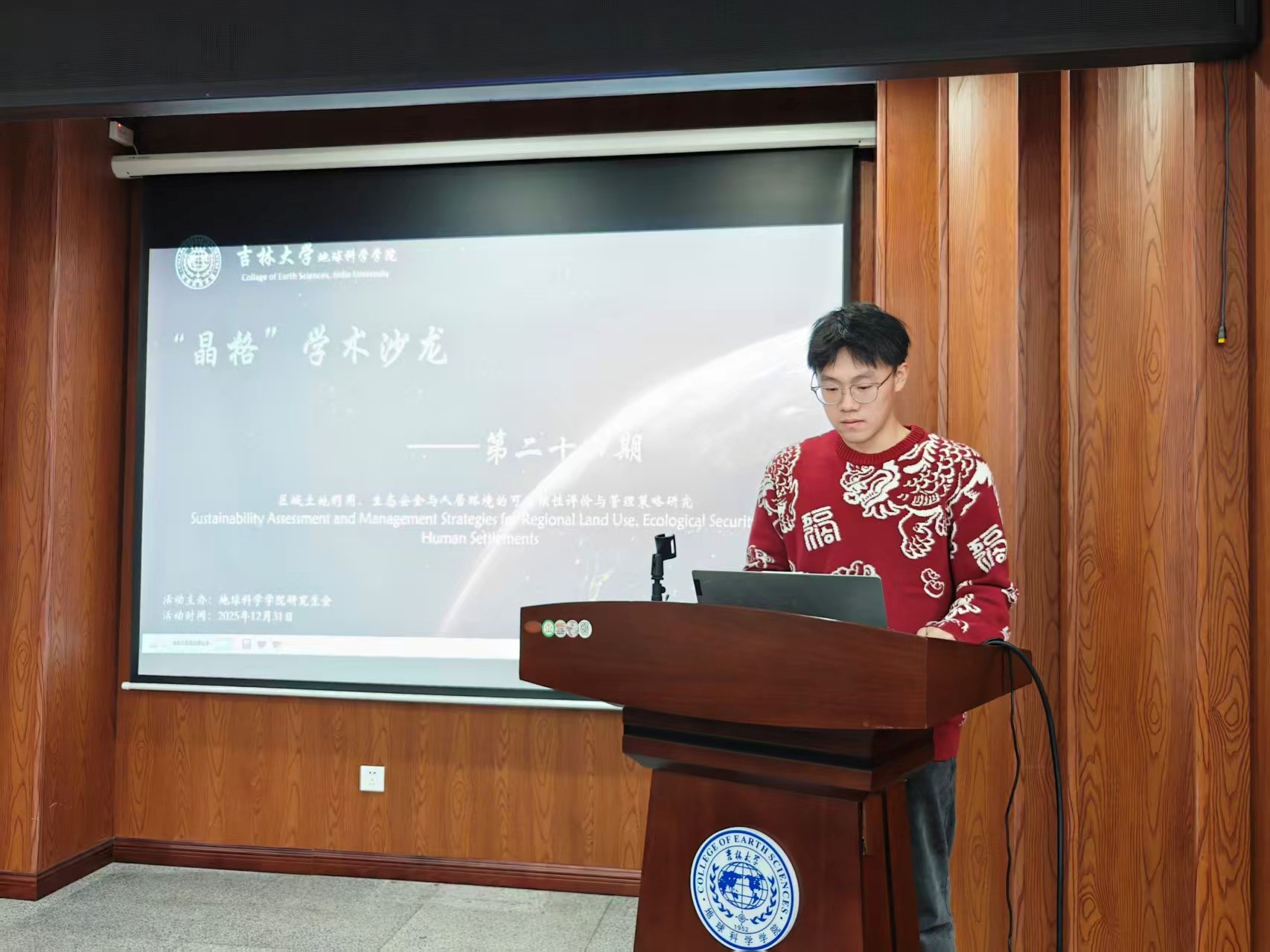 为加强研究生学术探讨与思想交流,跟踪学科前沿、拓宽学术视野、提升创新能力,学院于2025年12月31日在鸽子楼108-1教室举办了以“区域土地生态与人居环境可持续评价管理”为主题的第二十四期研究生“晶格”学术沙龙活动。