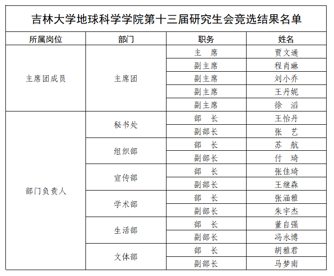 为进一步加强学院研究生干部队伍建设,更好地选拔国产做爱视频 研究生会新一届学生干部,本着“公平、公正、公开”的原则,经个人自愿申报、资格审查、竞职演讲、民主投票,综合现实工作表现进行考察,最终确定国产做爱视频-做爱免费看 第十三届研究生会学生干部名单,现予以公示: