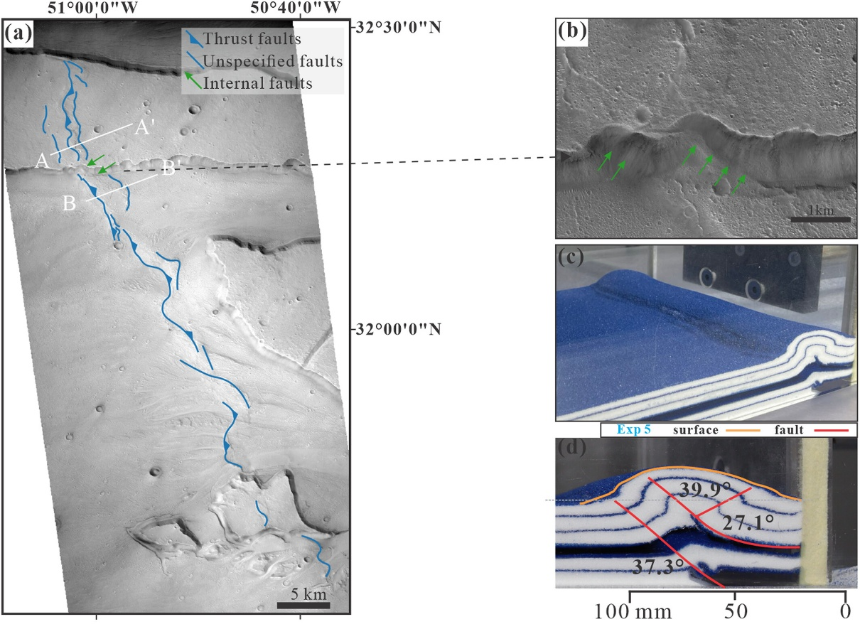 [1] Zhao, Z., Li, S., Sun, C., Wang, H., Wang, W., & He, X. (2025). Formation of Martian wrinkle ridges: New insights from analog experiments on décollement processes. Journal of Geophysical Research: Planets, 130, e2024JE008720. //doi.org/10.1029/2024JE008720