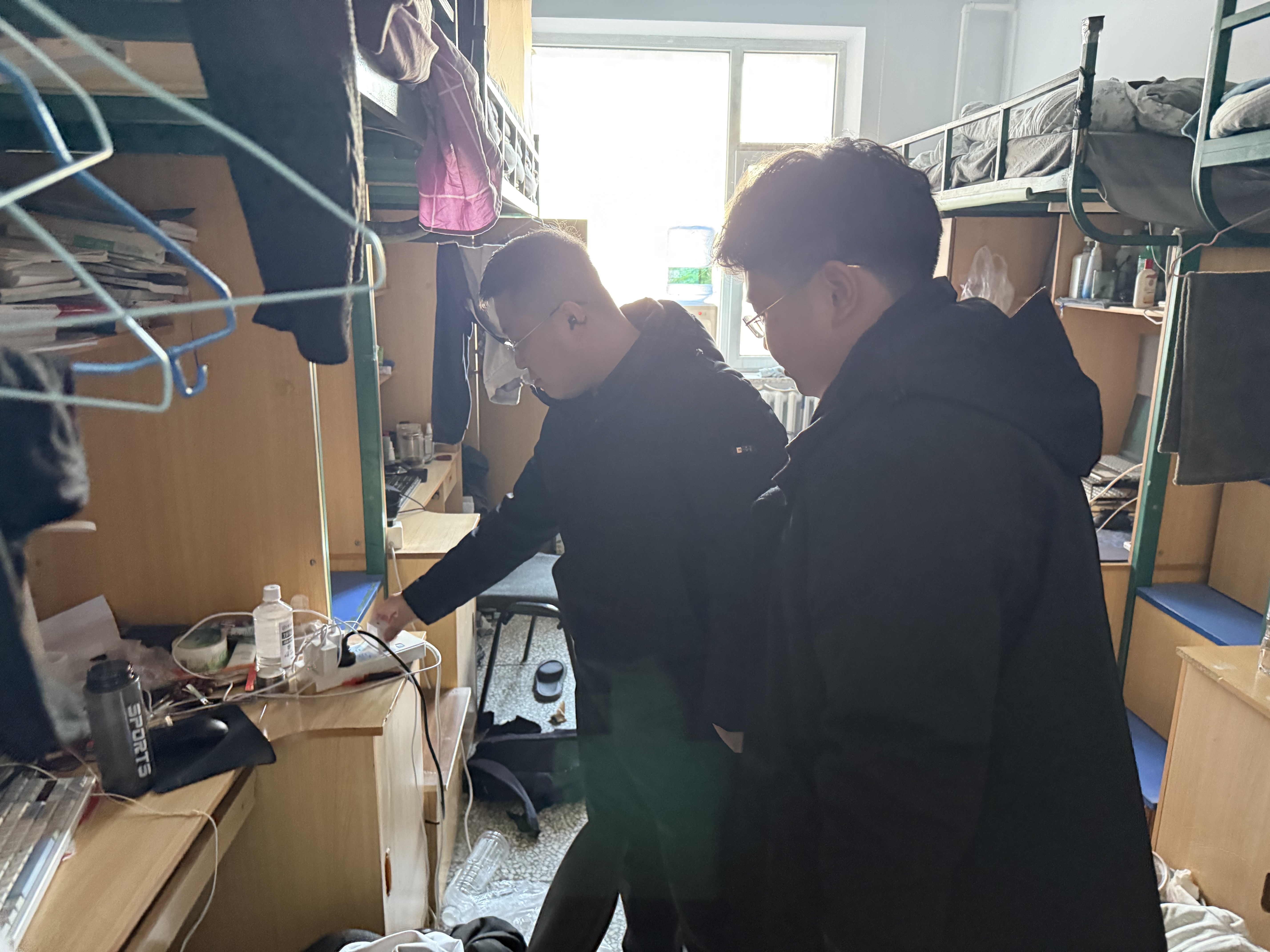 此次查寝过程中,学院老师们逐间走访宿舍,仔细核对同学们的到寝情况,确保每一位学子的返校安全。老师们从检查违规使用大功率电器和私拉乱接电线的情况入手,仔细查看插线板使用、电器摆放等细节,逐一排查用电安全隐患,叮嘱同学们要时刻绷紧安全这根弦,严格遵守宿舍安全管理规定,做到人走电断,坚决杜绝违规用电行为,从源头守住宿舍安全底线。