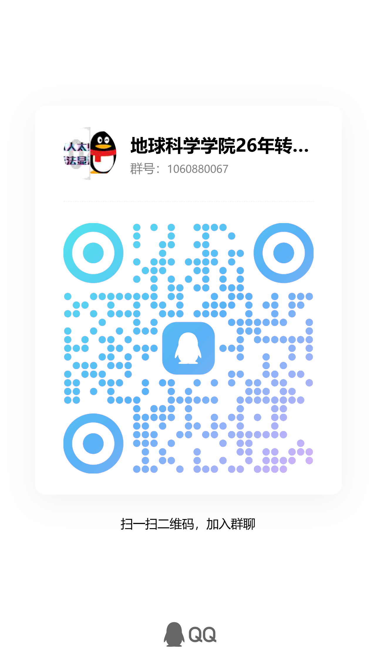 2026年学院转专业QQ群群号:1060880067,二维码见下图。请参加面试的同学尽快入群。