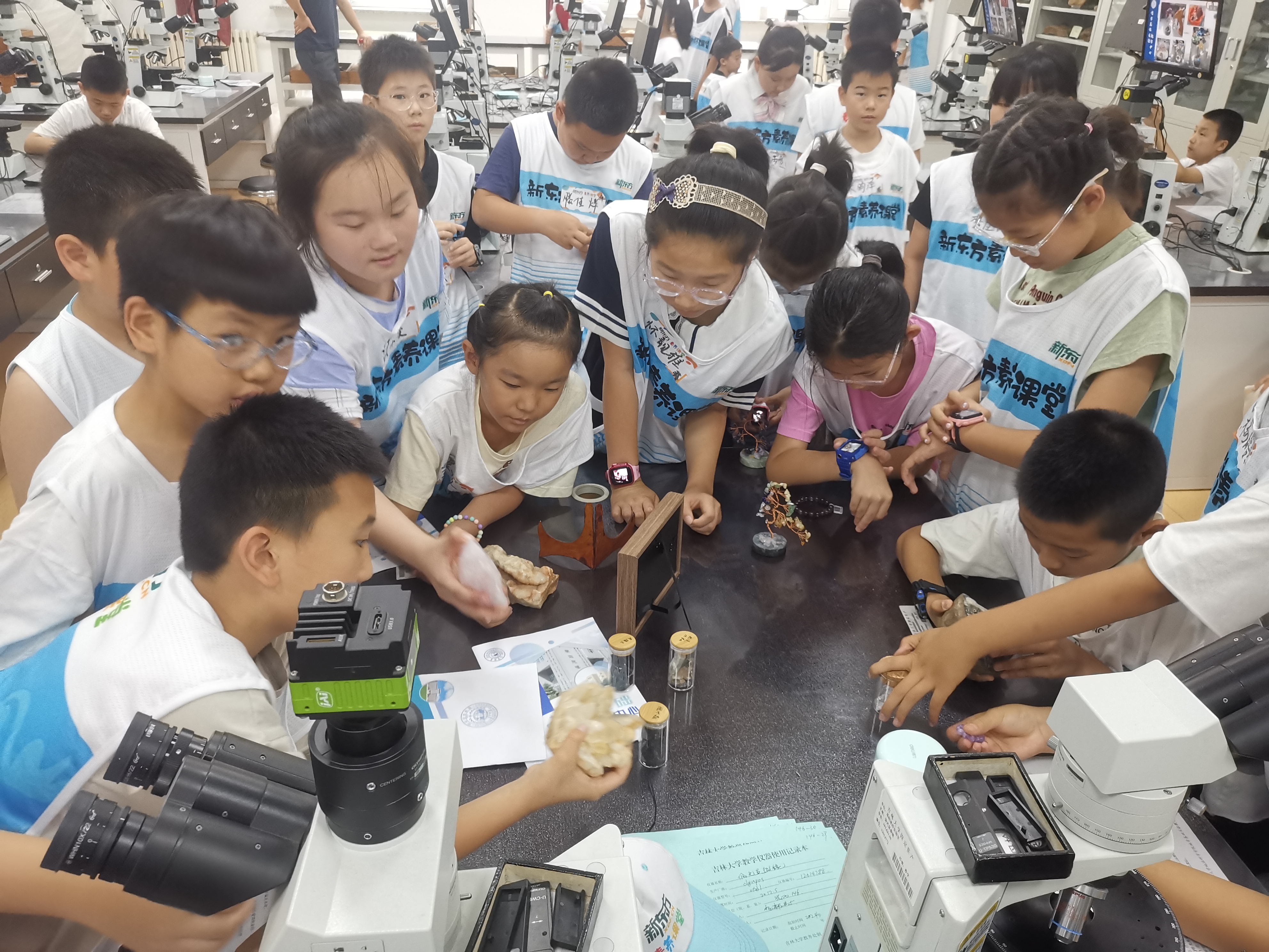 自7月13日至28日,我地学基础实验教学中心承接由吉林大学培训学院策划的面向中小学生的“新东方素养课堂”暑期科技实践教育系列活动。本次活动利用周末时间,为期5天,接待小学生1000余人。本次活动利用岩石学实验室、古生物与地层学实验室,开展走进地学实验室——地质学是什么;石英与生活——地球的物质组成;真真假假的化石——地球的演化三部分内容,通过知识讲解、实物演示、标本观察等多样化的学习体验,拓宽中小学生的知识视野,激发他们探索地球奥秘的学习兴趣。